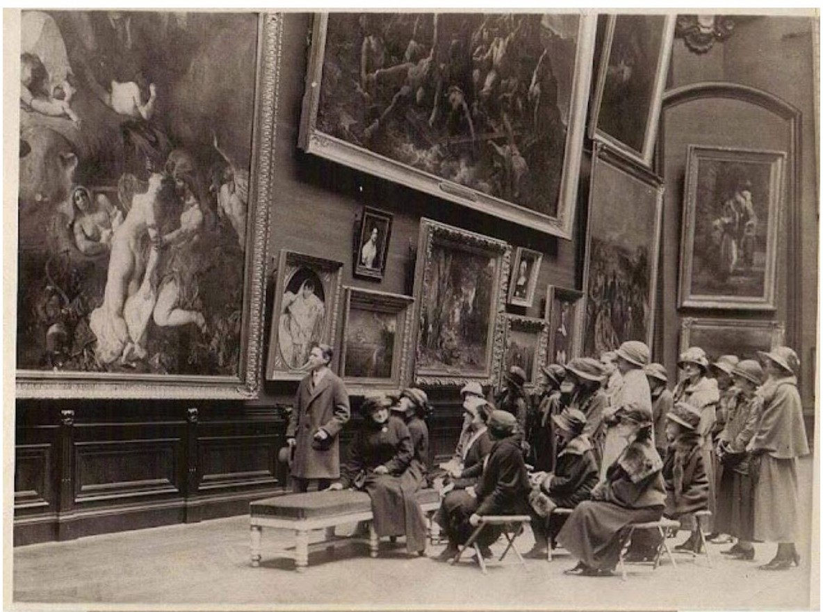 A veces es mejor no mirar, no dejarse atrapar, evitar que algo nos posea, tener que obedecer ciegamente, aunque nos cautive la belleza misma y la cabeza se nuble y el corazón estalle adentro. Hay quien prefiere no exponerse, ignorar ese influjo, no exhibir debilidad alguna. Es posible que a la señora sentada que no mira al cuadro le duela más que a los demás esa visión pura y de ahí que la esquive y le ofrezca la espalda. No será la primera vez que sale herida. Es posible que lo que esté haciendo sea reprender a alguien que no acuse el respeto que la pintura exige. Otra mujer, de pie, se fija en quien hace la fotografía. Se extrañaría de que esa situación se registre y perdure. Como si de alguna forma no fuese legítimo. Como si se incurriera en algún tipo de atropello moral.